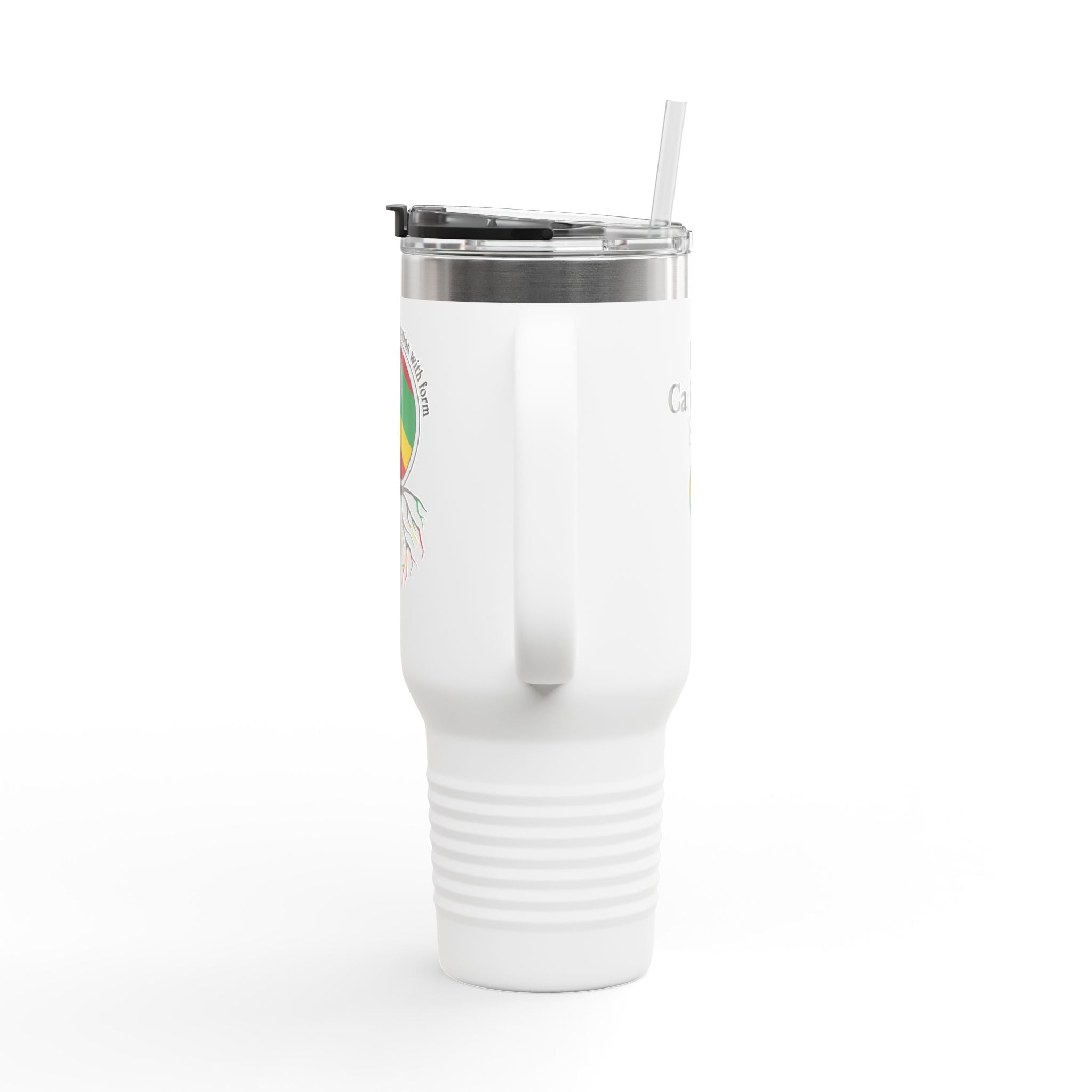 Carry your day with a calm, confident companion. This 40oz insulated travel mug holds more than coffee — it holds mornings, long drives, and the slow satisfaction of a warm drink that stays warm. The matte powder coat finish feels soft in the hand. An ergonomic handle and included straw make long trips easier; the leak-proof push-on lid keeps your bag clean when you’re moving. The artwork wraps the body with a grounded, earthy look — a quiet statement for someone who values roots, ritual, and the road. Use it on early hikes, long commutes, or while tending a home desk setup. When you reach for it, the temperature is right and the sip is steady.